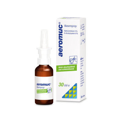 Der aeromuc® Nasenspray wirkt abschwellend und schleimlösend und verfügt über einen starken Duo-Effekt. Gerade in der kalten Jahreszeit sitzt der Schleim oft lange und tief in der Nase und Abhilfe mit schleimhautreizenden Nasensprays wird häufig zu lange durchgeführt. Hier setzt der aeromuc® Nasenspray als schonende und intelligente Alternative an. Er verflüssigt festsitzenden Schleim und/oder schleimig-eitriges Sekret in der Nasenhöhle. Mit den Inhaltsstoffen Acetylcystein und 3% Kochsalzlösung ist er die geeignete Alternative zu Sympathomimetika, die bereits nach kurzer Anwendungsdauer einen Gewöhnungseffekt hervorrufen können.